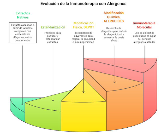 Así empezó el inicio de la inmunoterapia con alérgenos específicos utilizando extractos acuosos de fuentes alergénicas hasta 1930, que con la intención de mejorar la seguridad se introdujo una primera modificación física (extractos Depot) como el hidróxido de alumunio y otros adyuvantes que además de mejorar la seguridad, aumentaban tambien la inmunogenicidad del contenido alergénico sin necesidad de aumentar la cantidad de alérgeno.